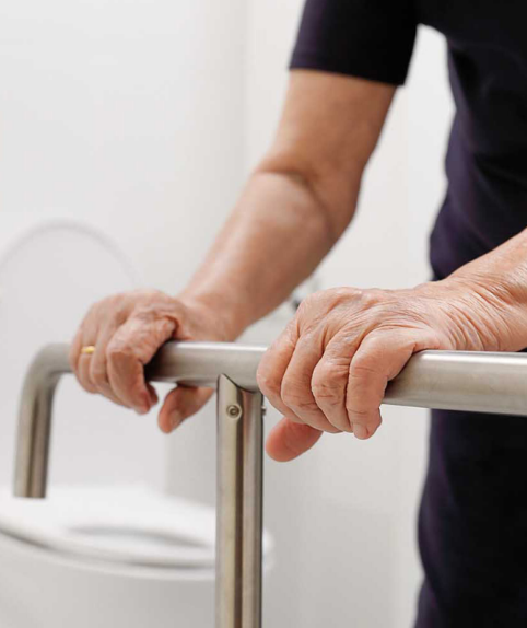 - Install a grab bar or attach a raised seat with handles to the toilet to assist